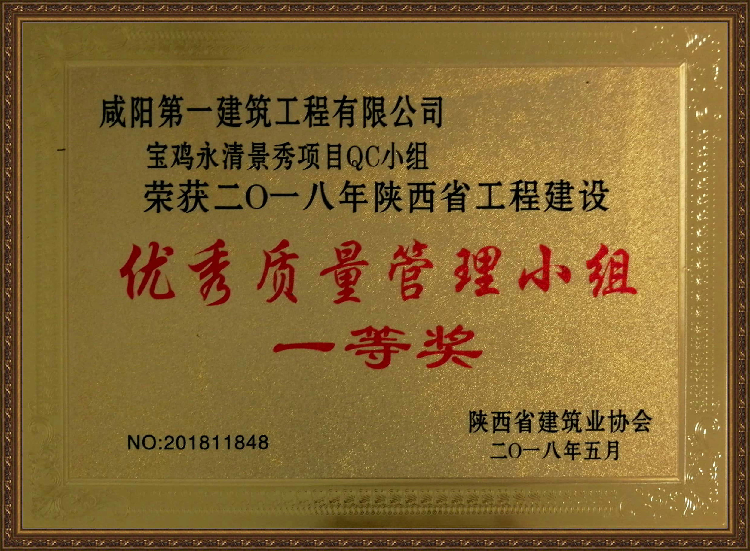 2018年獲陜西省工程建設(shè)優(yōu)秀質(zhì)量管理小組QC成果一等獎