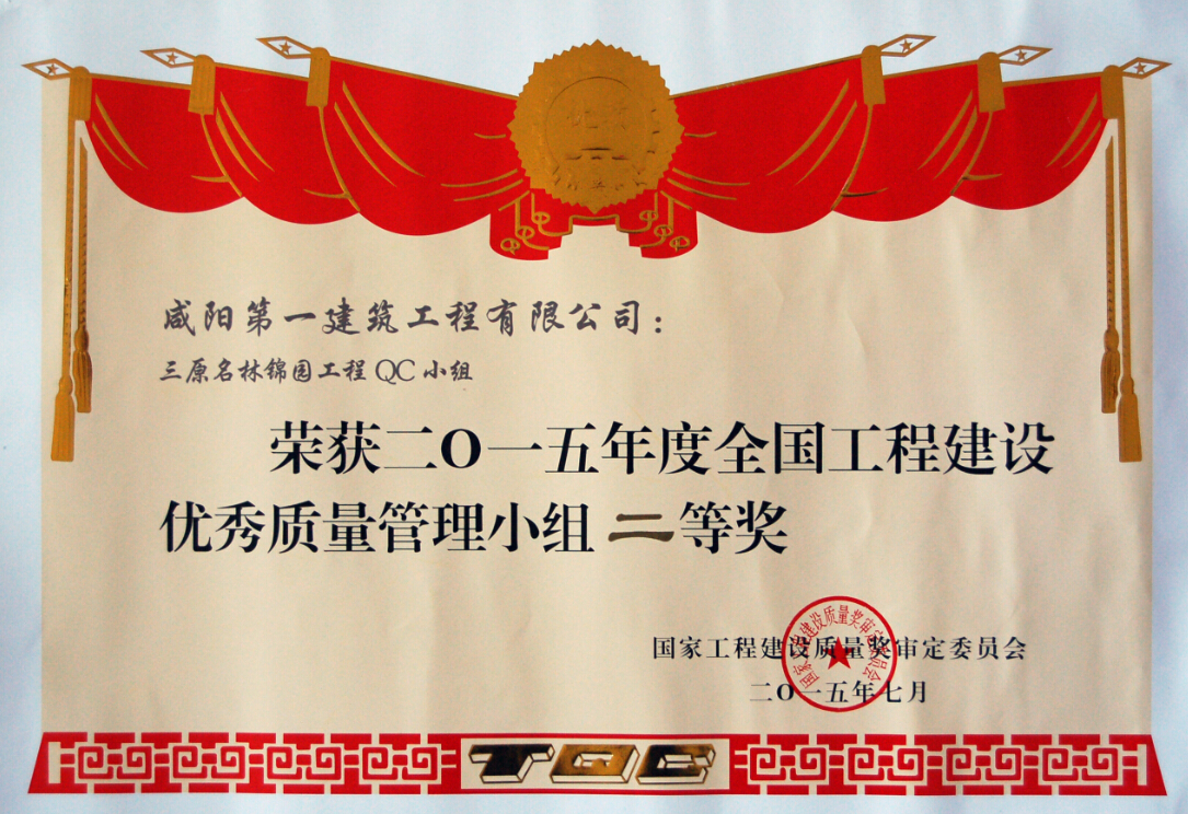 全國工程建設優(yōu)秀質量管理小組二等獎