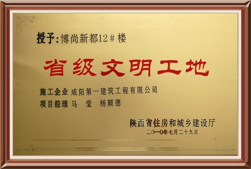 省建設(shè)廳授予的陜西省創(chuàng)建文明工地先進(jìn)企業(yè)